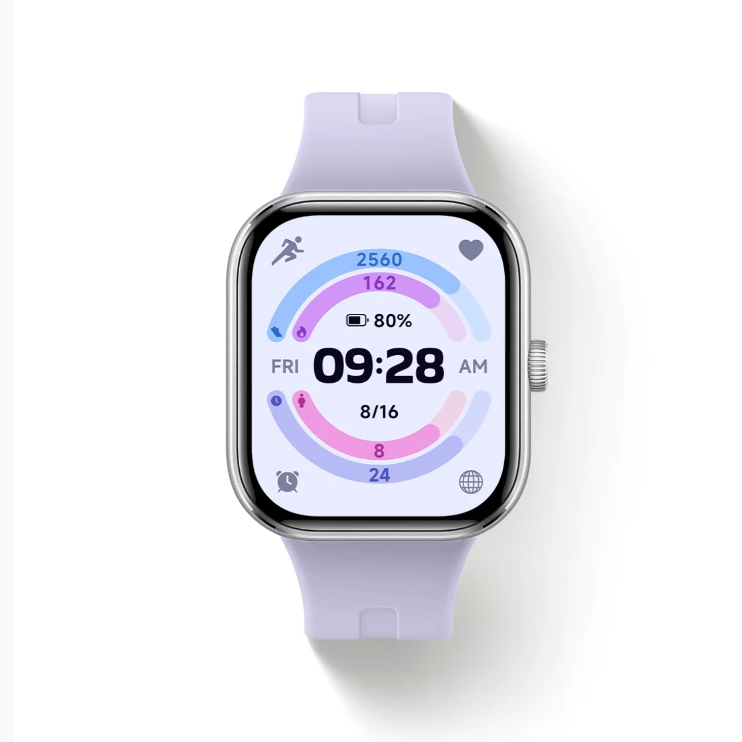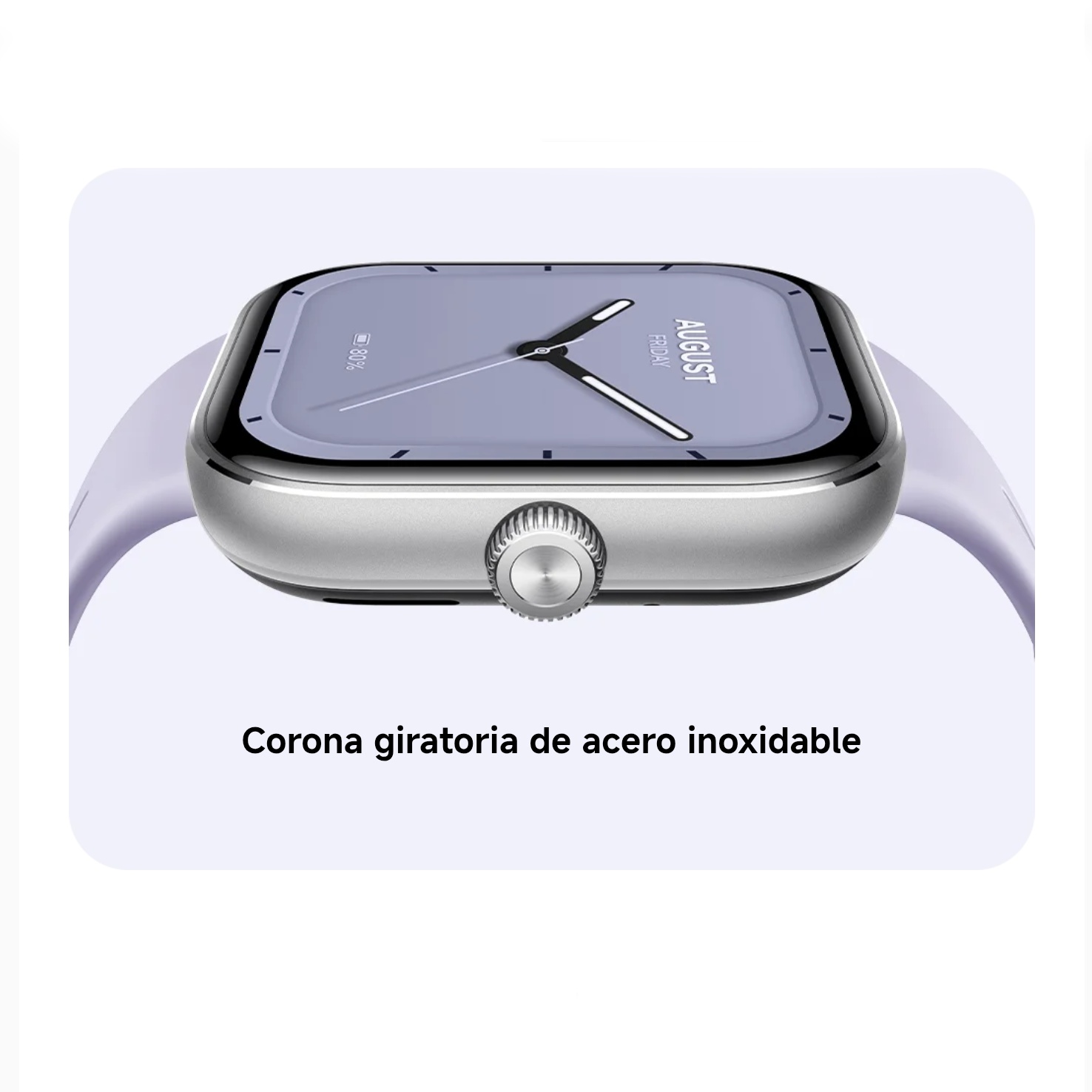Su batería de 550 mAh ofrece hasta 24 días de uso normal, lo que asegura una autonomía sobresaliente. La pantalla AMOLED cuadrada ultragrande de 2,07 pulgadas ofrece una resolución de 432 × 514 píxeles con 324 ppp, frecuencia de actualización de 60 Hz, brillo máximo de 1500 nits (HBM) y una relación pantalla-cuerpo del 82 %, lo que proporciona una visualización nítida incluso a plena luz del día.
